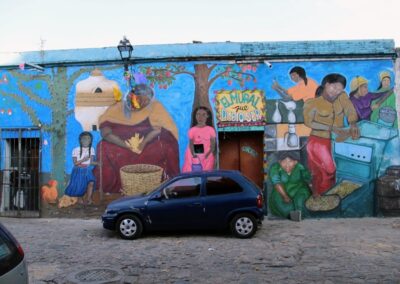 Oaxaca, a UNESCO world heritage site, is a vibrant, welcoming, historical and culturally rich city in southern Mexico. Oaxaca has become a world class destination. Pick up any travel magazine and they will have lists of the 10 best things to do in Oaxaca…from eating unique regional cuisine and mezcal tastings to the ancient archaeological sites and lovely artisan villages. It is home to some of the finest artists in the world and abounds with ceramics, textiles, tin art, woodcarvings, jewelry, and so much more. There is also a prolific contemporary art scene with many murals, printmaking studios, photography and modern art galleries to enjoy. The vibrant atmosphere, fabulous food, and friendly people make Oaxaca an amazing place to visit. We’ll spend several days exploring this culturally rich, architecturally beautiful city, visiting traditional and contemporary artist’s studios, taking street art and mural tours, enjoying the out-of-this world cuisine and creating a mural in the heart of Oaxaca City together.