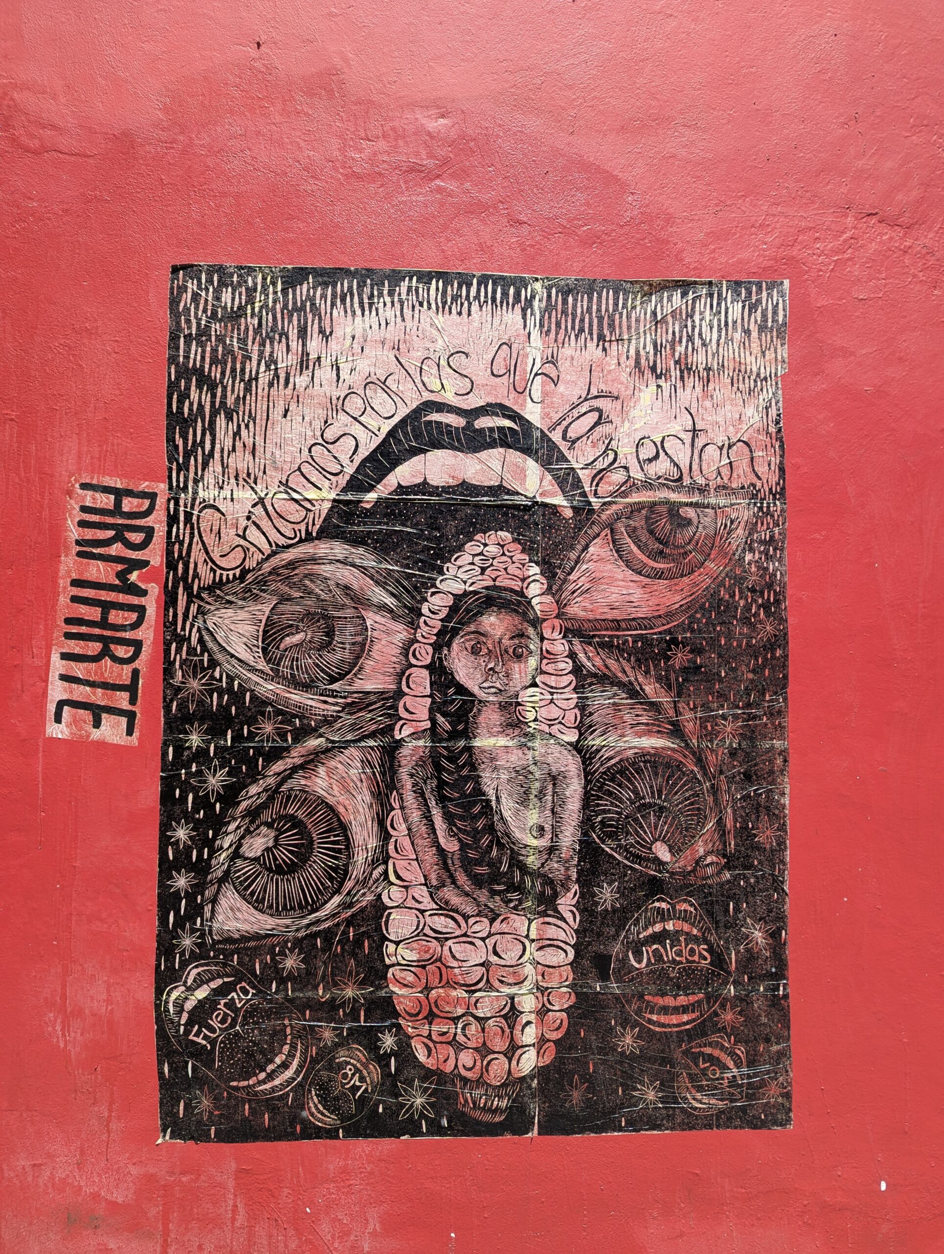 Jade currently resides in the city of Oaxaca, where she primarily works on her graphic and pictorial production, which she alternates with teaching collective mural workshops aimed primarily at women and children in communities across different regions of the state.