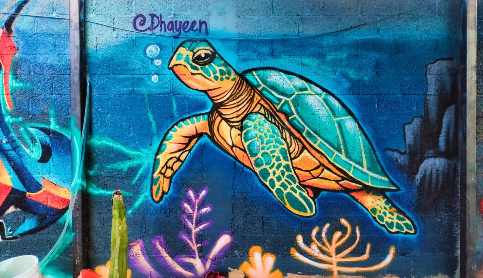 Norma Castellanos (Dayen), originally from the state of Oaxaca, has had a passion for drawing and painting since she was a child. It wasn’t until her adolescence that she had her first encounters with graffiti, making bombs and tags in the street. A graduate of the Technological Institute of the Valley of Oaxaca, she studied computer engineering. A few years ago, she began creating murals, signs, and drawings as a craft. She has participated in various mural and graffiti festivals in several states of Mexico and internationally.